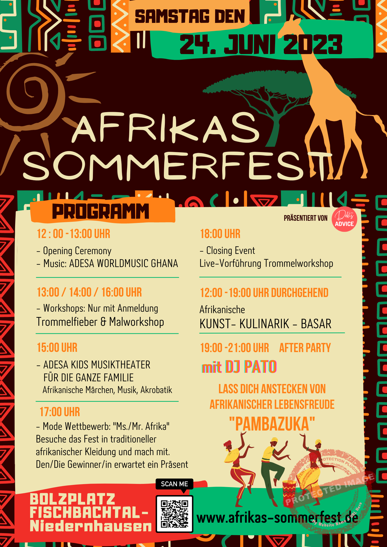 Besuche das Fest in traditioneller afrikanischer Kleidung und mach mit.